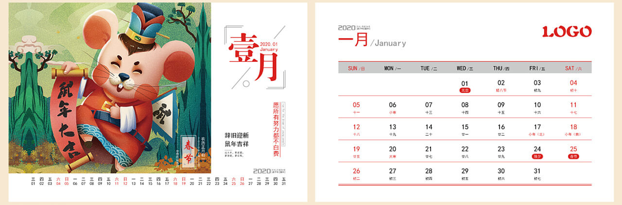2020年鼠年臺歷設(shè)計(jì)案例欣賞 紅色系 鼠年大吉