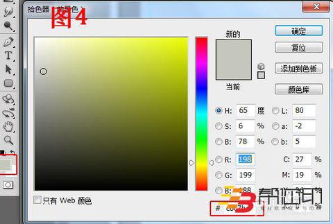 4、 設(shè)置前景色顏色為灰色(C6c7bc),如圖4所示。