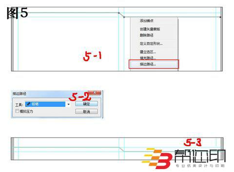 5、 設(shè)置鉛筆筆觸的大小為5.然后用鋼筆工具畫出如圖5中(5-1)所示的路徑,然后右擊鋼筆工具選擇“描邊路徑”,在彈出的對話框中選擇“鉛筆”如圖(5-2),然后點擊確定,描邊路徑后的效果如圖(5-3)所示。